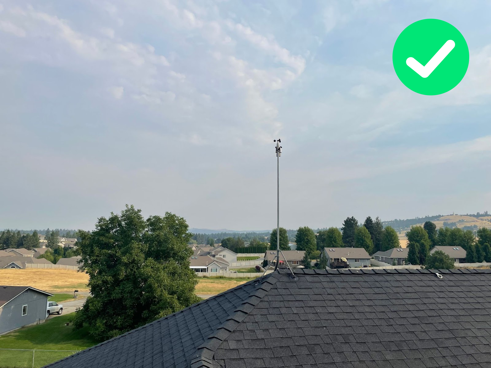The outdoor sensor should be placed on a higher mast (at least a 2m one) over the wooden structure. If there are higher buildings etc around, the sensor should be moved at the highest possible point (always using a at least 2m mast).